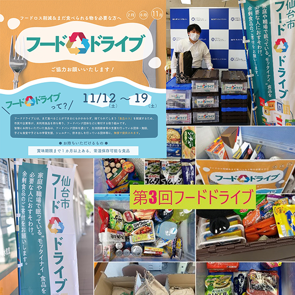 仙台市ボランティアセンターをはじめとした多くの支援団体の協力のもと、学校で給食のない時期に、何かできないかと言うことで始めたのがこのフードドライブです。